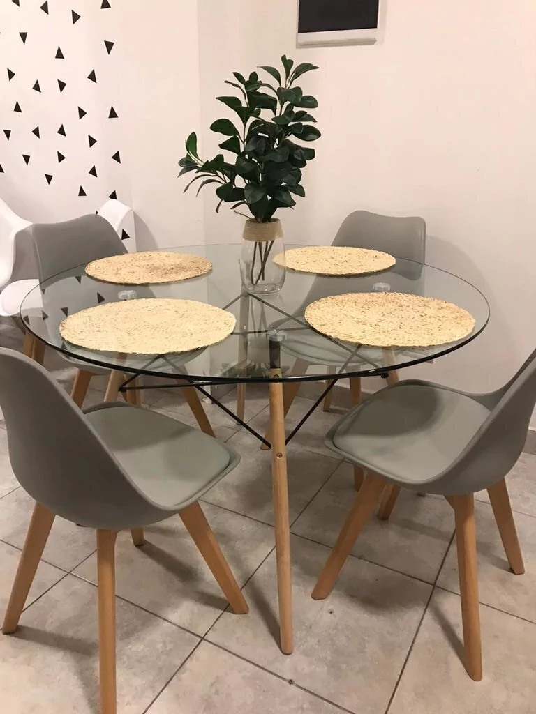 - MATERIAL: Vidrio templado y patas de madera de haya