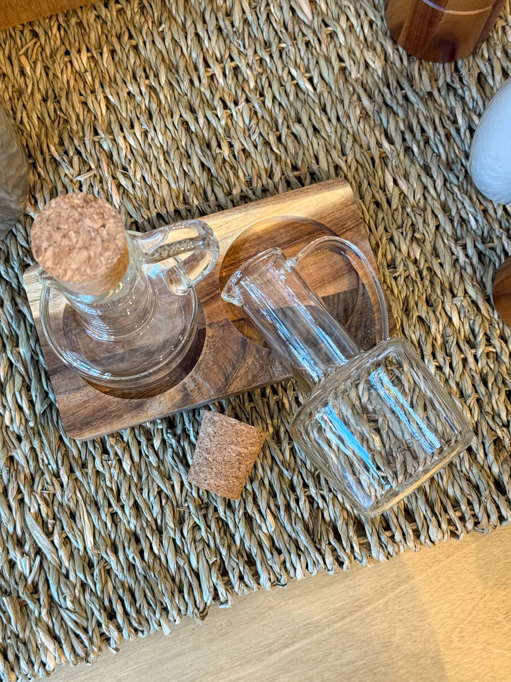 - MATERIAL: Vidrio Borosilicato, Madera de Acacia y Corcho