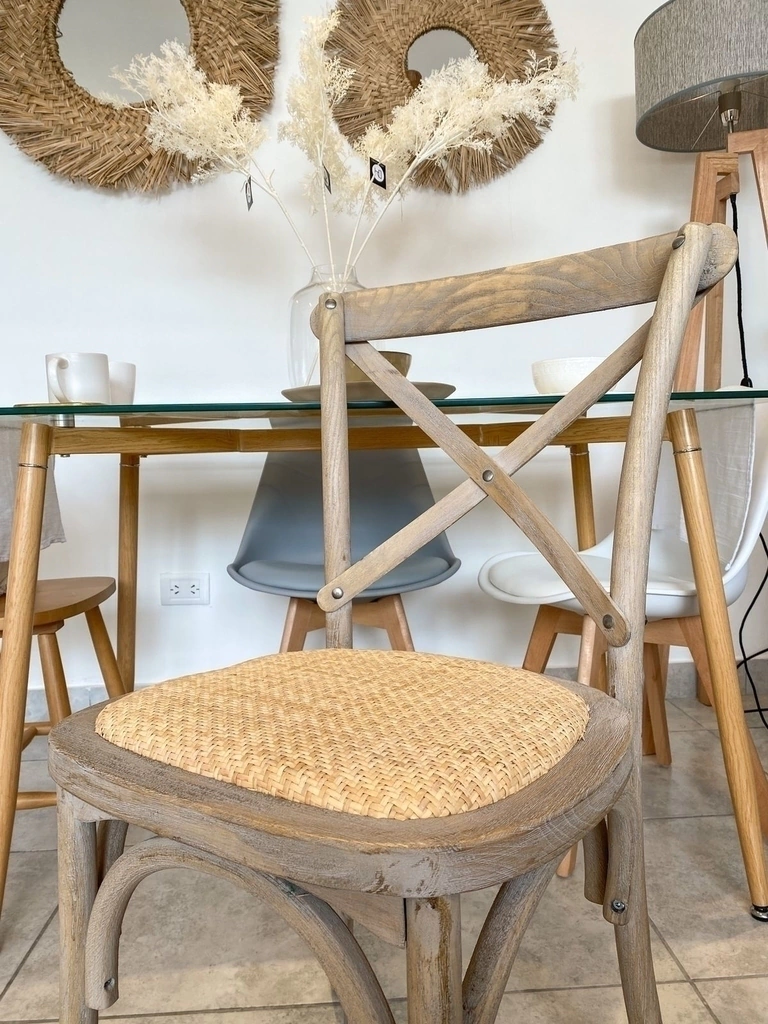 - MEDIDAS: 48cm del asiento al piso - 90cm de alto total - 40 cm ancho de la silla - 40 cm de profundidad